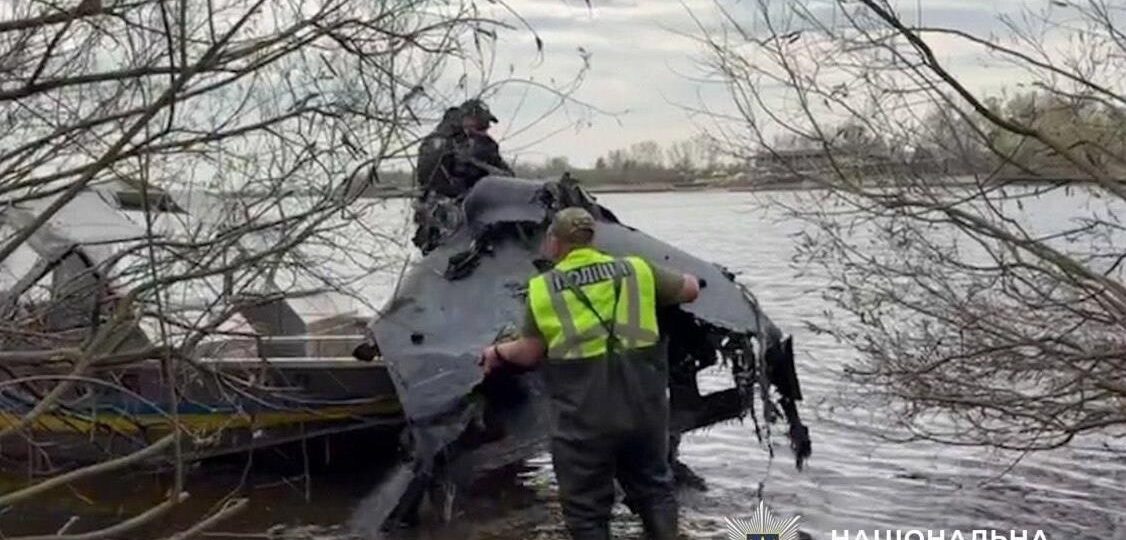 Столичні поліцейські вилучили з річки Дніпро безпілотник із бойовою частиною, запущений росіянами під час масованої атаки на місто 16 квітня. Про це повідомила пресслужба поліції Києва в пятницю, 17 квітня. Про небезпечну знахідку до поліції повідомив мешканець Голосіївського району. Під час обстеження акваторії правоохоронці встановили, що у воді знаходився російський дрон типу Герань-2 з бойовою частиною.